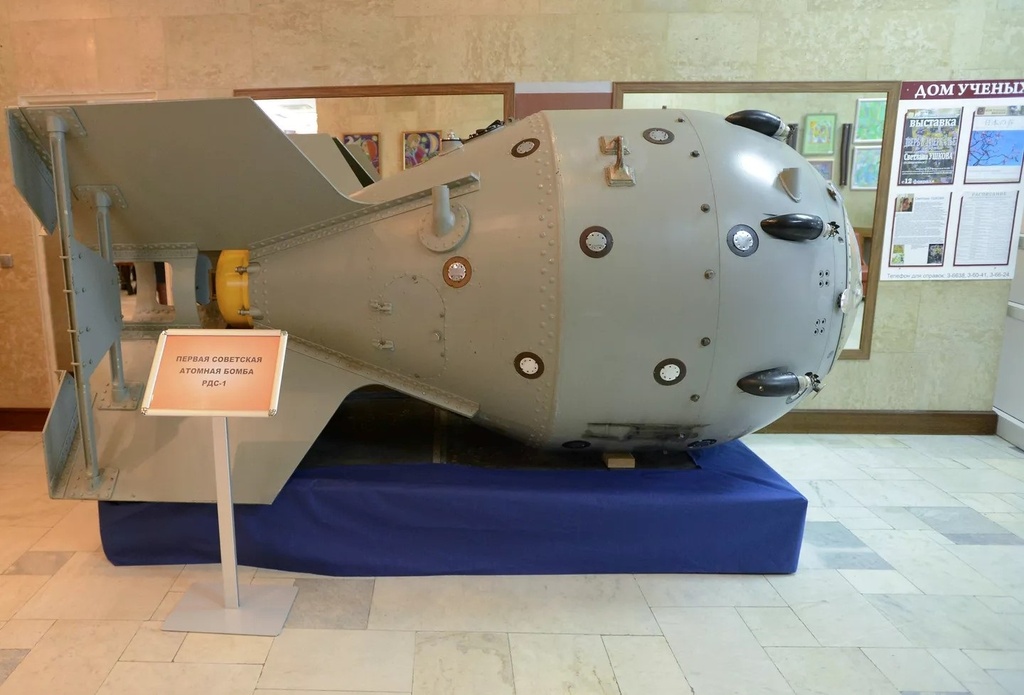 На фото: первая советская атомная бомба РДС-1 в музее Российского федерального ядерного центра — Всероссийского научно-исследовательского института экспериментальной физики (РФЯЦ-ВНИИЭФ) в Сарове. Источник: РИА Новости.