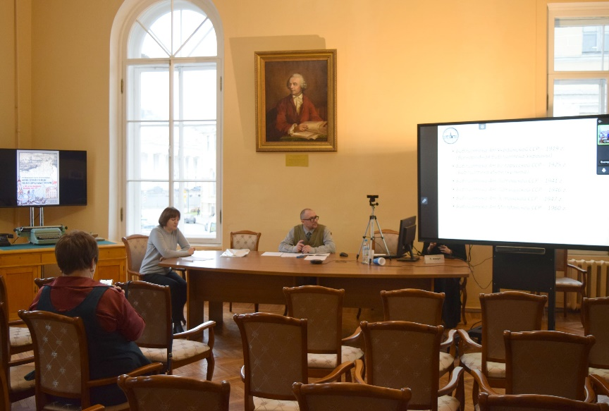 Обсуждение издательской деятельности Академии наук продолжили сотрудники архивов и библиотек из Москвы и Санкт-Петербурга на круглом столе «Издательское и библиотечное дело в Академии наук». В центре внимания были вопросы подготовки отдельных академических изданий, роль Академии наук СССР в формировании научных библиотек Академий союзных республик, история издательства Академии наук СССР, сохранения фондов академических библиотек в годы Великой Отечественной войны. Модератором круглого стола выступил ведущий научный сотрудник СПбФ ИИЕТ РАН, доктор исторических наук Евгений Пивоваров.
