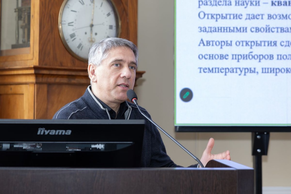 Научную программу заседания открыл доклад ведущего научного сотрудника ИХС РАН Максима Сычёва «Прорывные работы академика В.Я. Шевченко». Ещё в 1970-е годы Владимир Ярославович, анализируя гомологические ряды неорганических веществ, доказал существование связей структуры при переходах от полупроводниковых к металлическим свойствам, открыв закономерности переходов «диэлектрик-металл». Одним из прикладных результатов этих исследований стало создание тепломеров для контроля температуры в экстремальных условиях. Разработанная им теория прочности керамических материалов привела к созданию первых отечественных бронежилетов и защитных конструкций для техники.