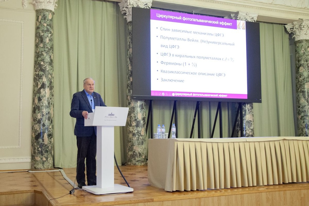 Открывая серию обзорных докладов, главный научный сотрудник Физико-технического института им. А. Ф. Иоффе РАН, академик РАН, член Объединённого научного совета по естественным наукам СПбО РАН Еугениюс Левович Ивченко рассказал о циркулярном фотогальваническом эффекте в полуметаллах Вейля и Рариты-Швингера-Вейля. Директор Новосибирского института органической химии им. Н.Н. Ворожцова СО РАН Елена Григорьевна Багрянская представила доклад на тему «Спиновая химия – современное состояние, направления развития, применение в материаловедении и биологии». Выступление научного руководителя Казанского физико-технического института им. Е.К. Завойского (обособленное структурное подразделение ФИЦ КазНЦ РАН), академика РАН Кева Минуллиновича Салихова было посвящено новой парадигме спинового обмена в разбавленных растворах парамагнитных частиц. Завершил серию обзорных докладов ведущий научный сотрудник Зоологического института РАН Кирилл Витальевич Кавокин с выступлением на тему «Магниторецепция у птиц: спины или токи?».